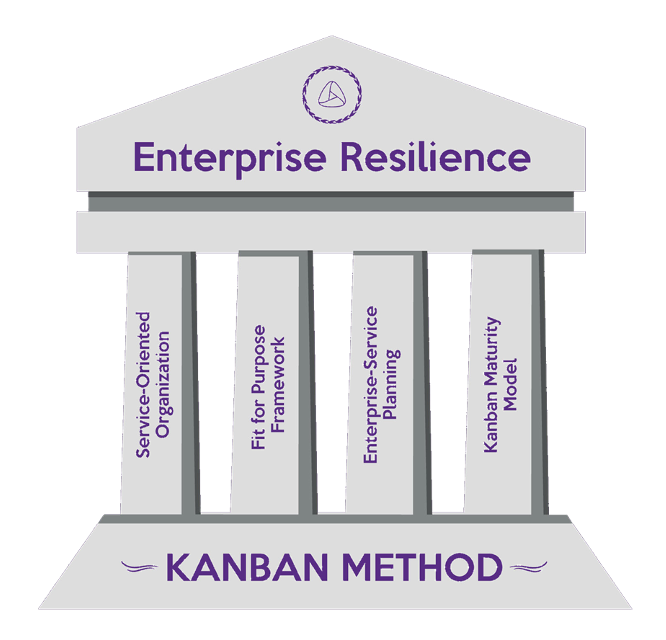 The pillars of the modern resilient business are a Service-Oriented Organization (SOO), Fitness-for-Purpose (F4P), Enterprise Services Planning (ESP), and Organizational Maturity delivered using the KMM. These are the pillars of resilience that have been built upon the foundations on the Kanban Method. Above which leadership is the mantle holding the pillars together.